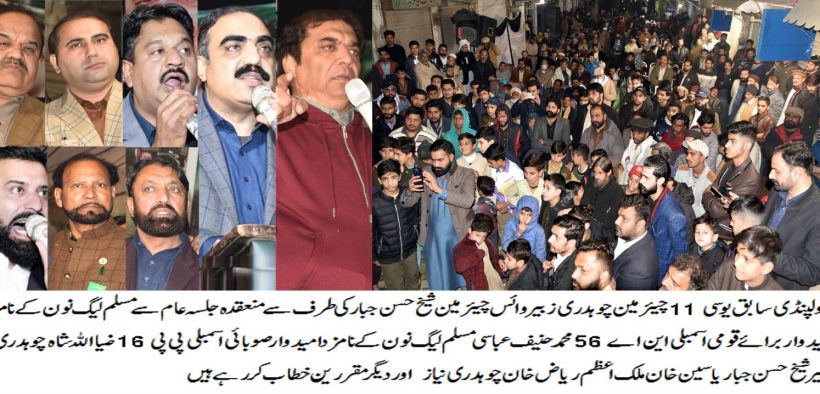 راولپنڈی(سہ پہر) سابق یو سی11 چیئرمین چوہدری زبیر وائس چیئرمین شیخ حسن جبار کی طرف سے منعقدہ جلسہ عام