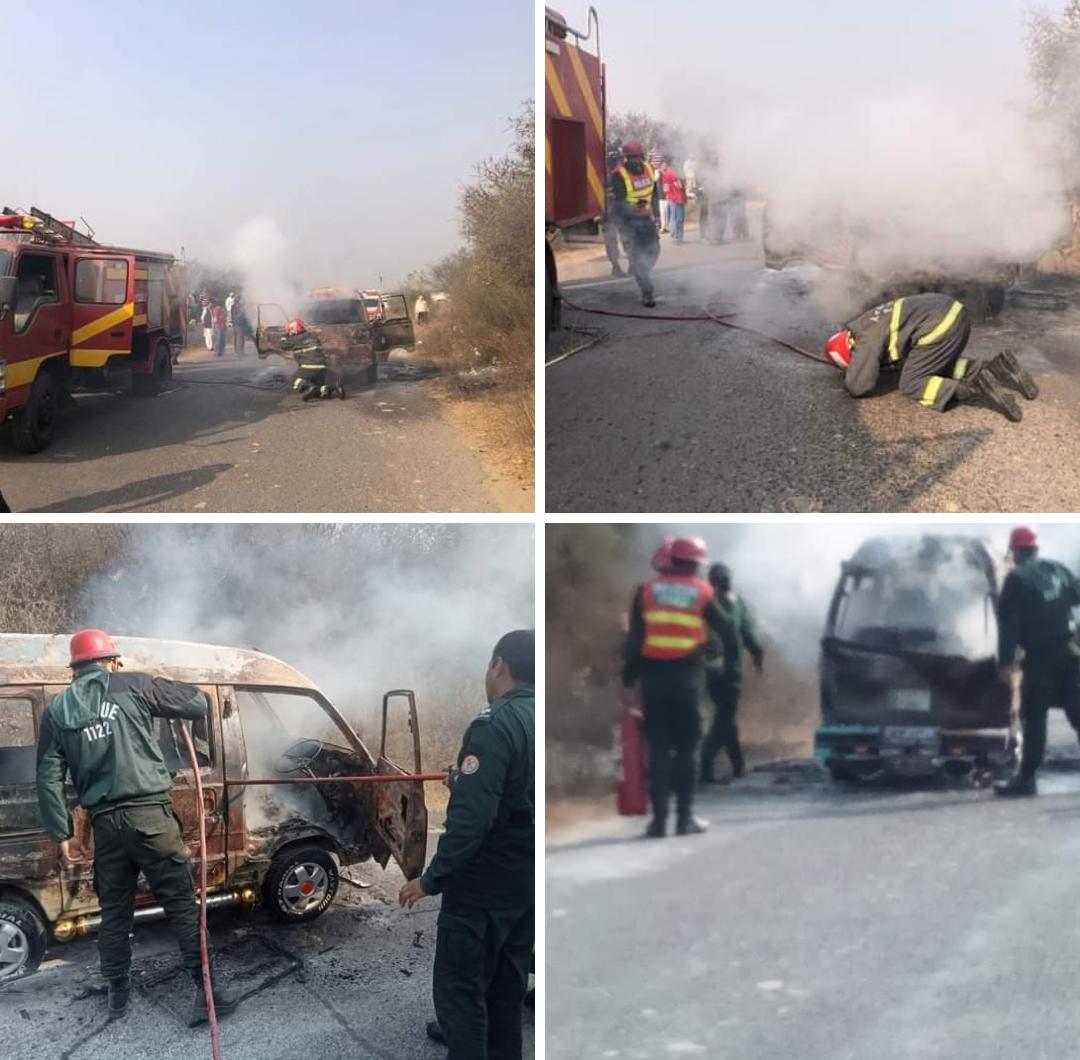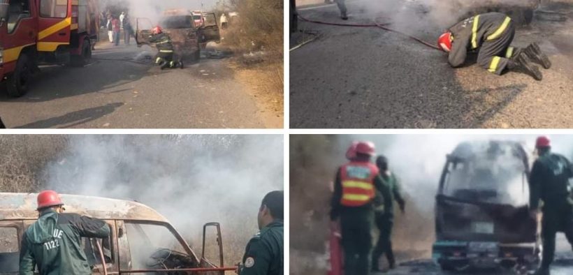 تفصیلات کے مطابق اٹک فتح جنگ روڈ پر اکھوڑی چیک پوسٹ کے قریب کیری وین میں شارٹ سرکٹ کی وجہ سے آگ بھڑک اٹھی