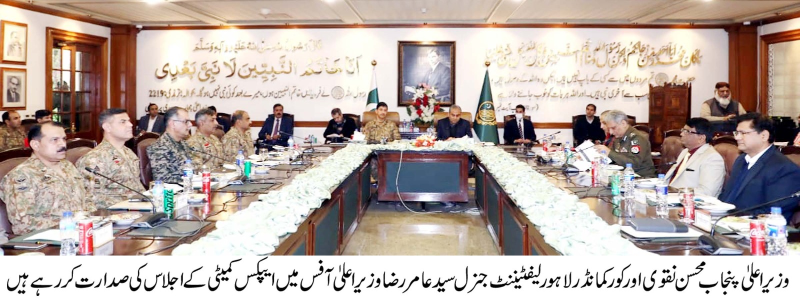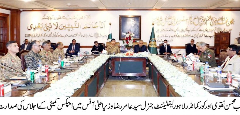 وزیراعلی محسن نقوی اور کورکمانڈر لاہورلیفٹیننٹ جنرل سید عامر رضا کی زیر صدارت اپیکس کمیٹی کا اجلاس،الیکشن سکیورٹی اور انتظامات کا جائزہ