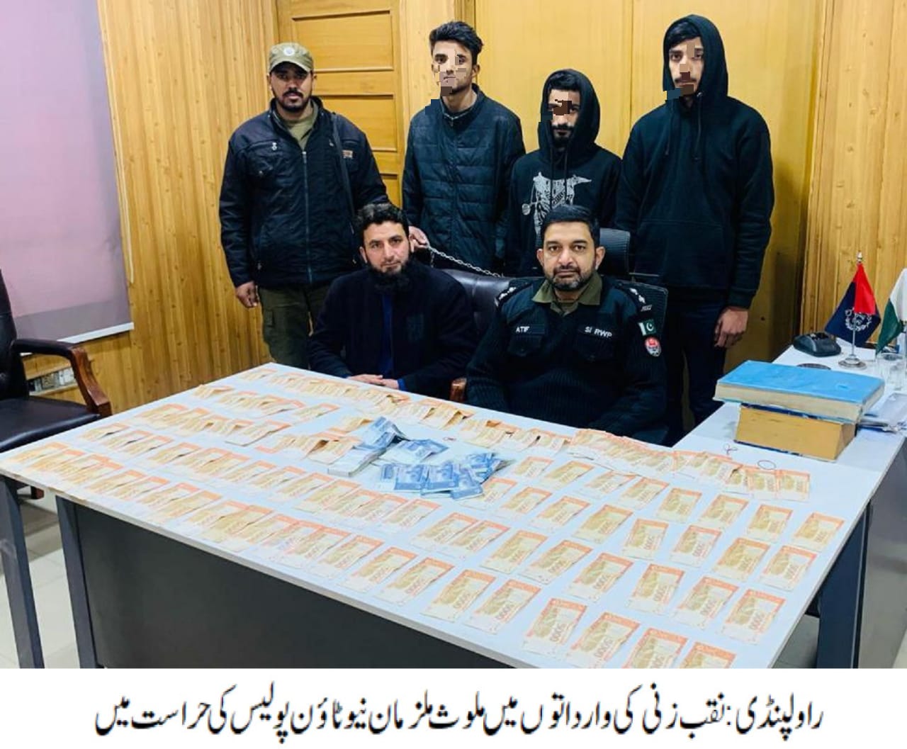 راولپنڈی( )ایس ایچ او تھانہ نیو ٹاؤن لقمان جاوید کی ہمراہ پولیس ٹیم کاروائی، نقب زنی کی وارداتوں میں ملوث03رکنی گینگ گرفتار،مسروقہ رقم 13 لاکھ 70ہزار روپے برآمد۔تفصیلات کے مطابق نیو ٹاؤن پولیس نے کاروائی کرتے ہوئے نقب زنی کی وارداتوں میں ملوث 03رکنی گینگ کو گرفتار کر لیا،گرفتار ملزمان کی شناخت کشف جمیل،عبد الحنان عرف ہنواور عبدالخنان کے نام سے ہوئی،ملزمان سے مسروقہ رقم 13 لاکھ 70ہزار روپے برآمدہوئے،ملزمان نے چند روز قبل فرنیچر کی دوکان کے تالے توڑ کر رقم اور کیمرے چوری کیے تھے،ایس پی راول فیصل سلیم کا کہنا تھا کہ ملزمان کو ٹھوس شواہد کے ساتھ چالان عدالت کرکے قرار واقعی سزا دلوائی جائے گی،شہریوں کی جان و مال پر حملہ کرنے والے قانون کی گرفت سے نہیں بچ سکتے۔