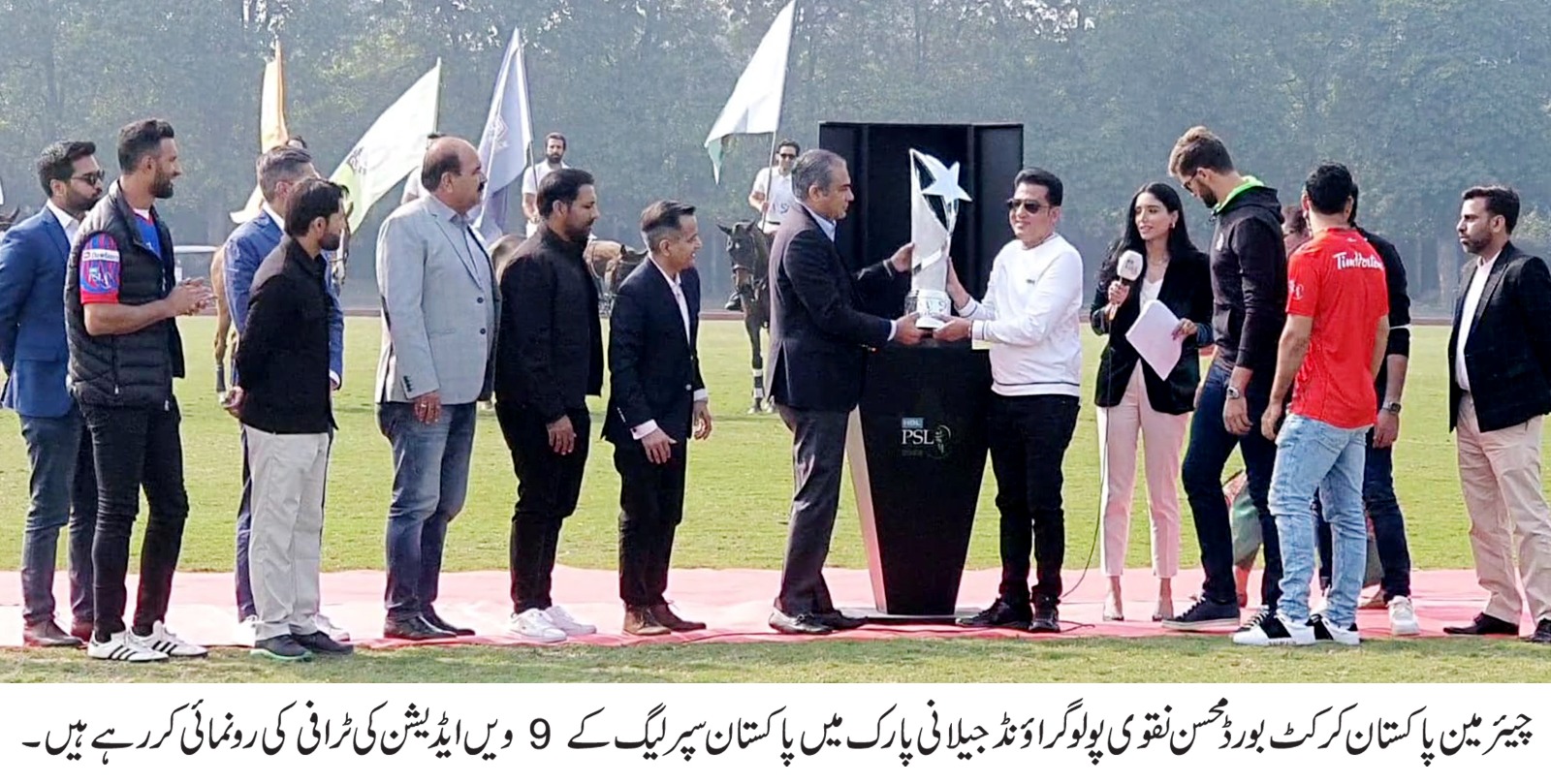 لاہور13 فروری:……چیئرمین پاکستان کرکٹ بورڈ محسن نقوی نے آج پاکستان سپر لیگ(پی ایس ایل)9ایڈیشن کی ٹرافی کی رونمائی کر دی۔پی ایس ایل 9ایڈیشن کی ٹرافی کی تقریب رونمائی پولو گراؤنڈ جیلانی پارک میں منعقد ہوئی۔چیئرمین پی سی بی محسن نقوی تقریب میں پہنچے تو ان کا پرتپاک خیرمقدم کیا گیا۔چیئرمین پی سی بی محسن نقوی نے فرنچائز مالکان اورٹیموں کے کپتانوں سے ملاقات کی۔تقریب کے آغاز پر قومی ترانہ پیش کیا گیا۔پولو سٹارز قومی پرچم،پی ایس ایل کا پرچم اور تمام ٹیمز کے پرچم اٹھا کر گراؤنڈ میں داخل ہوئے۔چیئرمین پی سی بی محسن نقوی نے فرنچائز مالکان اور کپتانوں کے ساتھ مل کر پی ایس ایل 9ایڈیشن کی ٹرافی کی رونمائی کی۔صوبائی مشیر وہاب ریاض،کمشنر لاہور،چیف آپریٹنگ آفیسر پی سی بی سلمان نصیر،سابق کرکٹرز اور شائقین کرکٹ کی بڑی تعداد اس موقع پر موجود تھی۔چیئرمین پی سی بی محسن نقوی نے میڈیا سے گفتگو کرتے ہوئے کہا کہ آج پی ایس ایل 9کی ٹرافی کی رونما ئی کی گئی،امید ہے کہ یہ ایک زبردست ٹورنامنٹ ہو گا۔پی سی بی کی پوری ٹیم پی ایس ایل 9کی تیاری کررہی ہے اور ٹیمیں لاہور پہنچنا شروع ہو گئی ہیں۔17فروری کو پہلا میچ ہو گا،ہماری طرف سے تمام تیاریاں مکمل ہیں۔چیئرمین پی سی بی نے کہا کہ امید ہے کہ پاکستان کے لوگ ایک بڑا ٹورنامنٹ دیکھیں گے۔ پی سی بی کے حوالے سے روزانہ کی بنیاد پر بریفنگ لے رہا ہوں،پوری کوشش ہے کہ پی ایس ایل9ایک بڑا ایونٹ بنے اور ٹورنامنٹ کے حوالے سے انتظامات کو بہتر بنانے کے لئے ہر سطح کوشش کی گئی ہے۔ ہم محنت میں کوئی کمی نہیں چھوڑیں گے۔محسن نقوی نے کہا کہ پی سی بی میں وقت کے ساتھ تبدیلیاں ہوں گی،ابھی ایک ہفتے کے دوران متعدد ضروری فیصلے کئے ہیں۔محسن نقوی نے کہا کہ انشاء اللہ پی ایس ایل کو بڑا ٹورنامنٹ بنائیں گے۔انہوں نے کہا کہ کام کا دونوں طرف سے دباؤ ہے،کچھ بریفنگز لے لی ہیں باقی جاری ہیں۔جب پی سی بی کے مسائل کی پوری تصویر سامنے آئے گی تب مزید فیصلے کئے جائیں گے،اس کیلئے کچھ وقت درکار ہے۔ماضی کے مسائل کو بھی سمجھ رہاہوں، کمزوریاں بھی جان رہا ہوں،انشاء اللہ تمام رزلٹ آپ کے سامنے ہو گااورکوئی چیز چھپے گی نہیں۔