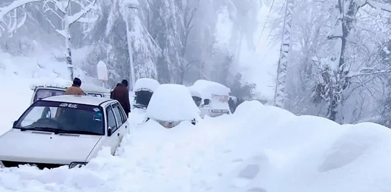راولپنڈی (سہ پہر) مری میں گزشتہ 15گھنٹوں سے زائد برفباری کاسلسلہ جاری، شہریوں اور سیاحوں کے محفوظ انخلاء کے لئے ریسکیو آپریشنز جاری، سیاحوں کیلئے ٹریول ایڈوائزری جاری، حدِ نگاہ صفرہونے کے باعث شہری مری کیجانب سفر سے گریزکریں۔برفانی طوفان کے پیشِ نظر مری میں روڈکلیئرنس تک مزید گاڑیوں کےداخلے پر مکمل پابندی عائدکردی گئی ہے۔شہریوں اورسیاحوں سے اپیل ہے کہ خراب موسم کے پیشِ نظرمری کا سفرمؤخر کریں اور احتیاطی تدابیر اختیار کریں۔مری روڈ پر ضلعی وٹریفک پولیس اور ریسکیواہلکار سیاحوں کوبحفاظت نکالنےمیں مصروف ہیں،بھارا کہواور سترہ میل پر رکاوٹیں لگادی گئی ہیں، انسانی جانوں کاتحفظ ہماری اولین ترجیح ہے