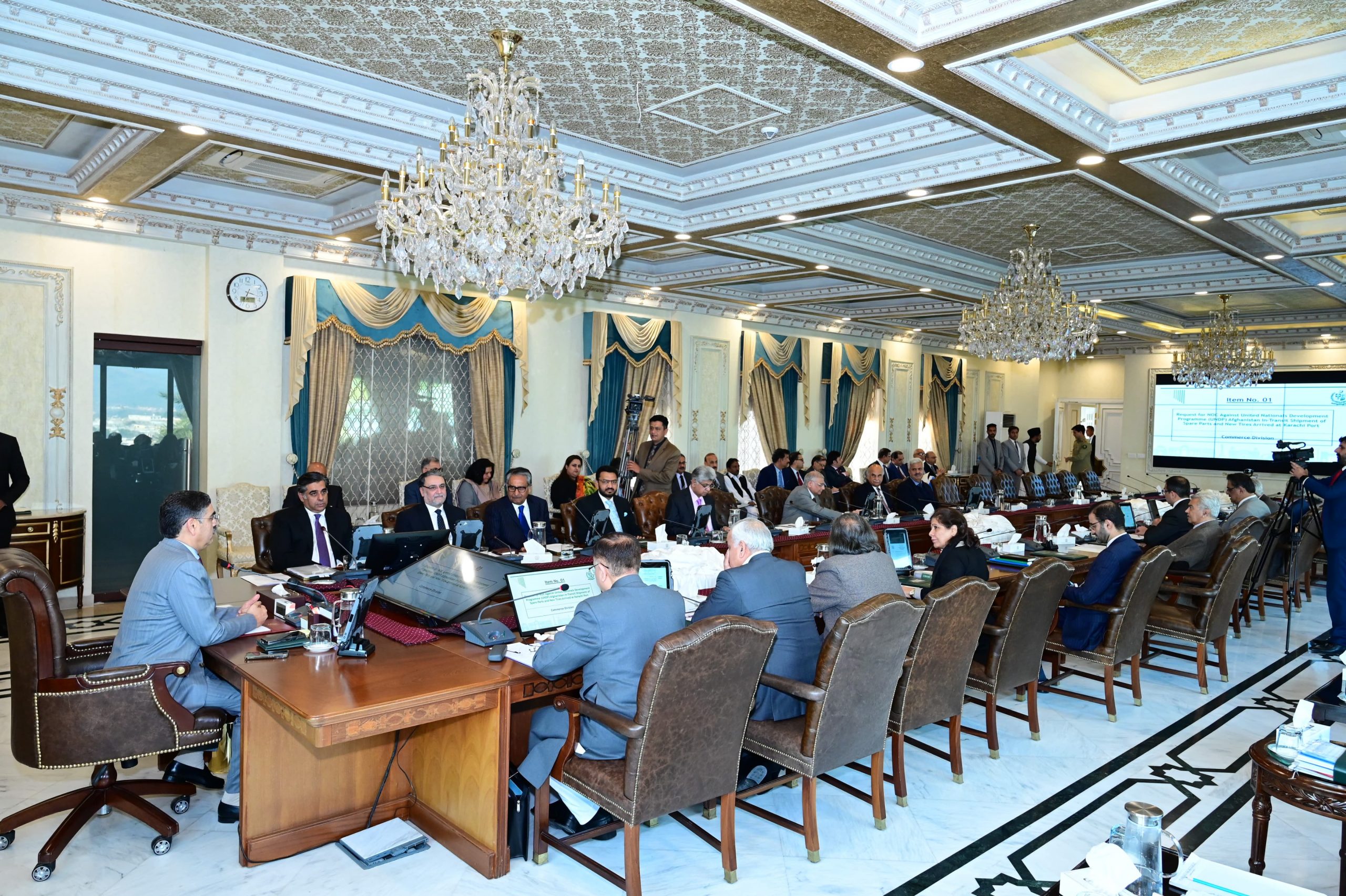 وفاقی کابینہ نے وزارت تجارت کی سفارش پر اقوام متحدہ ترقیاتی پروگرام (UNDP) کے تحت افغانستان کنٹری آفس کے زیر استعمال گاڑیوں کے اسپئیر پارٹس اور نئے ٹائروں کی کراچی پورٹ سے کابل، افغانستان ٹرانزٹ /منتقلی کی منظوری دے دی۔ کابینہ کو بتایا گیا کہ ملک میں اسمگلنگ کی روک تھام کے لیے ایسی درآمدات اور ان کی افغانستان منتقلی کی ممانعت ہے تاہم اقوام متحدہ ترقیاتی پروگرام کے تحت مذکورہ اسپئیر پارٹس اور ٹائروں اقوام متحدہ کے استعمال میں ہوں گے اور انہیں کاروباری استعمال میں نہیں لایا جائے گا۔
