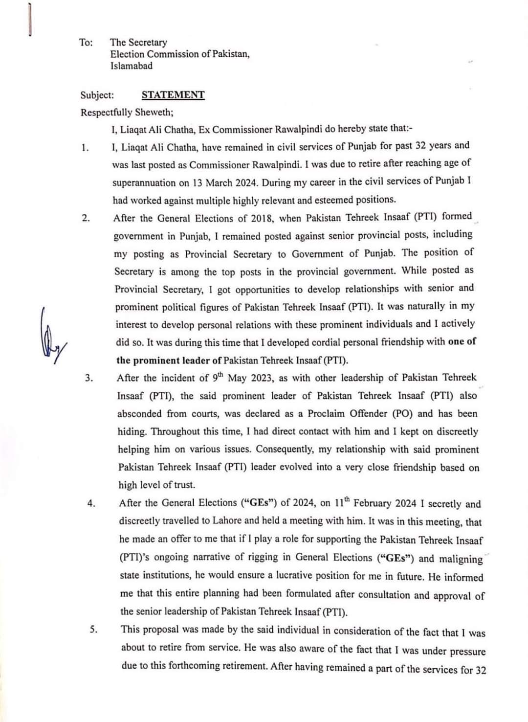 سازش پکڑے جانے پر لیاقت چٹھہ نے معافی نامہ سیکرٹری ECP کو بھیج دیا