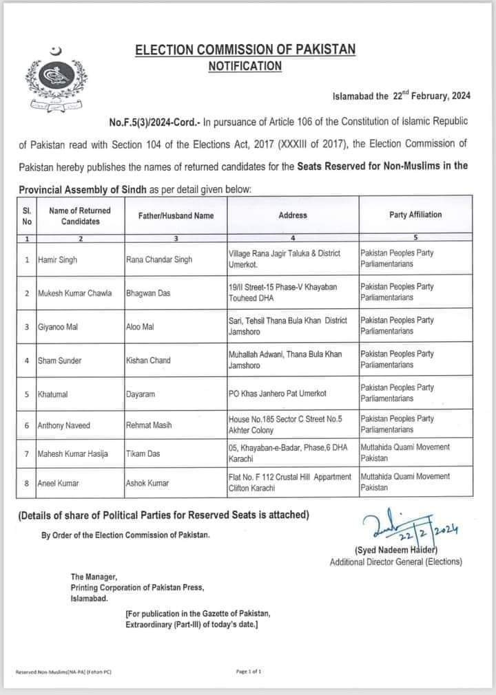 تازہ ترین اسلام آباد(سہ پہر) الیکشن کمیشن نے سندھ اسمبلی میں خواتین اور اقلیت کی مخصوص نشستوں پر منتخب ممبران سندھ اسمبلی کا نوٹیفکیشن جاری کردیا admin 2024-02-24 اسلام آباد الیکشن کمیشن نے سندھ اسمبلی میں خواتین اور اقلیت کی مخصوص نشستوں پر منتخب ممبران سندھ اسمبلی کا نوٹیفکیشن جاری کردیا