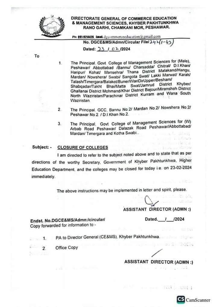 Students sent back home from colleges, Higher Education Department Khyber Pakhtunkhwa