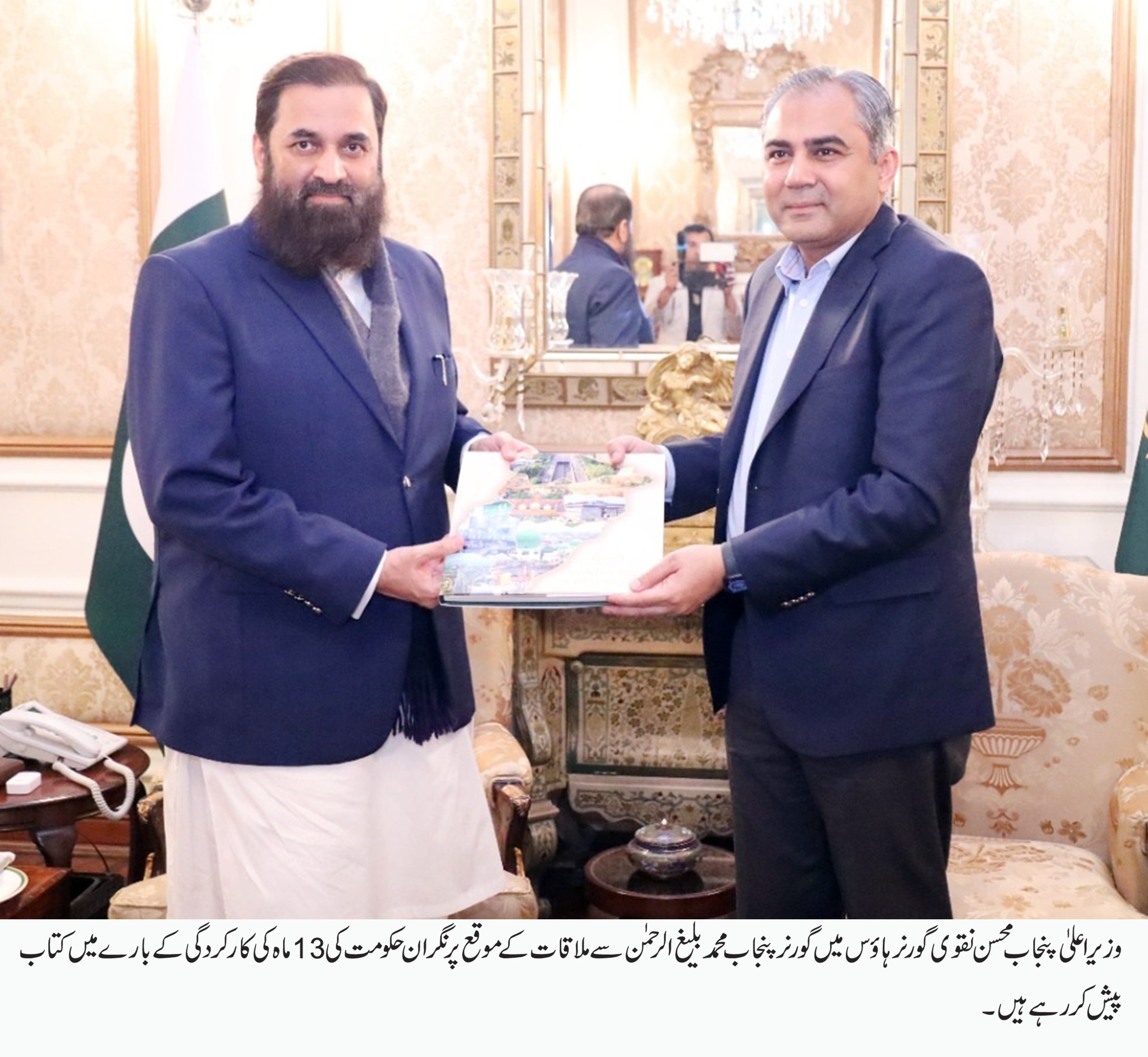 وزیراعلی محسن نقوی نے نگران حکومت کی کارگردگی کے بارے گورنر پنجاب کو کتاب پیش کی