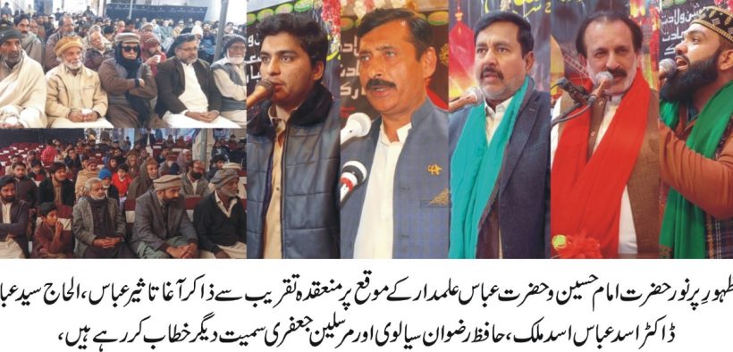 سرگودھا (سہ پہر) سرگودھا میں جشنِ ظہورِ پرنور حضرت امام حسینؑ و حضرت عباس علمدارؑ عقیدت و احترام سے منایا گیا، تفصیلات کے مطابق امام بارگاہ انجمن مہاجرین حسینی بلاک 19 سرگودھا میں حضرت امام حسینؑ اور حضرت عباس علمدارؑ کے یومِ ولادت کے سلسلے میں “جشنِ ظہورِ پرنور” کی ایک پروقار تقریب منعقد ہوئی۔ تقریب میں عاشقانِ اہل بیتؑ کی کثیر تعداد نے شرکت کی، جہاں شہدائے کربلا کی یاد میں کیک کاٹا گیا اور مقررین نے ان کی سیرتِ طیبہ پر روشنی ڈالی۔ تقریب کے مہمانِ خصوصی شیخوپورہ سے آئے ہوئے قاری القصائد ذاکر آغا تاثیر عباس تھے۔ ان کے ہمراہ حافظ رضوان سیالوی نے نعت خوانی کی اور شاعرِ آلِ عمران محمد علی حسن ترابی نے منقبت پیش کی۔ ڈاکٹر اسد عباس اسد ملک نے بھی حضرت امام حسینؑ اور حضرت عباسؑ کی زندگی کے مختلف پہلوؤں کو اجاگر کرتے ہوئے انہیں انسانیت کے لیے مشعلِ راہ قرار دیا۔اس تقریب کے انعقاد میں الحاج سید عباس رضا بخاری، حاجی جاوید منیر ترابی، سید کرار حیدر شیرازی، اور مرسلین جعفری نے کلیدی کردار ادا کیا۔ پروگرام میں سید بازغ رضا بخاری (شیخوپورہ) نے خصوصی شرکت کی۔متحدہ اسلامیہ سکاؤٹس کے زیرِ انتظام منعقدہ اس جشن میں سید دبیر حسین بخاری، سید حماد رضا، سید اکبر عباس، سید توقیر بخاری، سید ذاکر بخاری، سید شہزاد الحسن نقوی، محمد علی مہدی، سید عون شاہ، سید قمر عباس نقوی، سید شجاعت علی زیدی، اعزاز حسین، سید علی زین بخاری، سید بلال حیدر، سید کمال حیدر، سید منظور علی اور سید ثمر عباس بخاری سمیت دیگر معززین نے بھرپور شرکت کی۔ تقریب کے اختتام پر حضرت امام حسینؑ و حضرت عباس علمدارؑ کی والادت کیک کاٹا گیا اور ملکی سلامتی اور استحکام کے لیے خصوصی دعائیں بھی مانگی گئیں۔