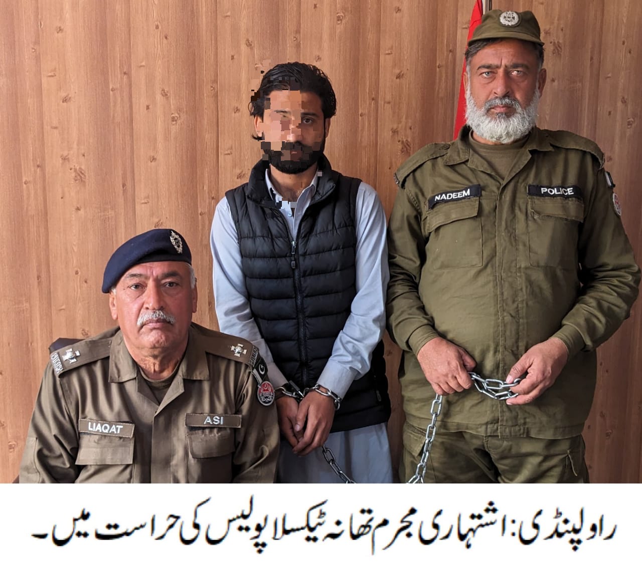 راولپنڈی(سہ پہر) ایس ایچ او تھانہ ٹیکسلا راجہ گلتاج کی زیرنگرانی پولیس ٹیم کی کاروائی