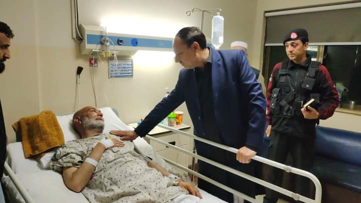 چارسدہ: ڈسٹرکٹ پولیس آفیسر چارسدہ نذیر خان نے ہسپتال انتظامیہ سے بھی ملاقات کی زخمی ڈی ایس پی کی صحت کے بارے میں دریافت کیا، زیر علاج ڈی ایس پی نسیم خان کے بہترین علاج و معالجہ کی درخواست کی۔