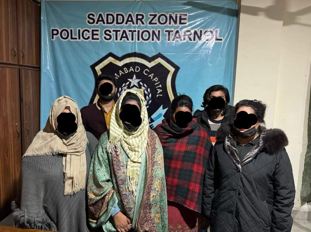 ایس ایچ او ٹیم کے ہمراہ سیکٹر جی 15 میں مساج سینٹر کے نام پر فحاشی کے اڈے پر چھاپے کے دوران رنگ رلیاں مناتے ہوئے 6 افراد کو گرفتار کرلیے گیے