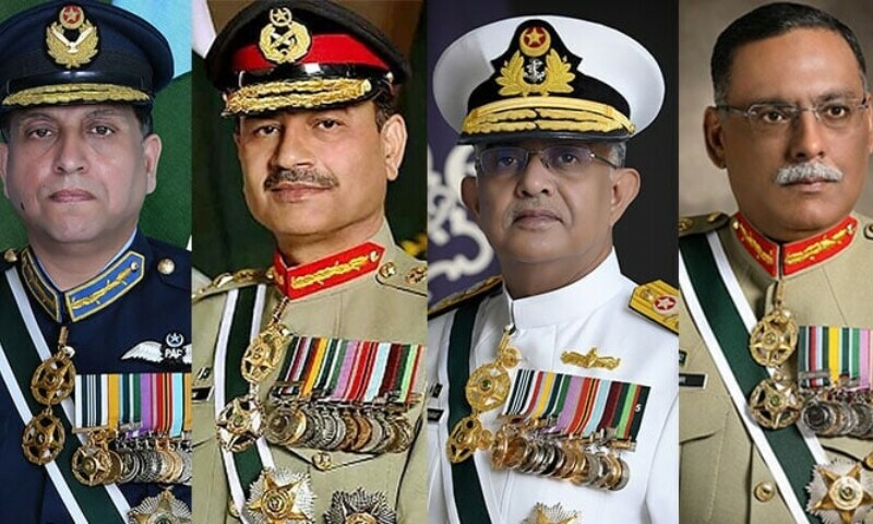 Maj Gen Saeed Ur Rehman Sarwar, TSO, Maj Gen Shahid Pervaiz, NLI, Maj Gen Muhammad Asim Khan, Arty, Maj Gen Nadeem Yousaf, Avn, Maj Gen Ghulam Muhammad, Arty, Maj Gen Noor Wali Khan, Baloch, Maj Gen Muhammad Naeem Akhtar, AK, Maj Gen Raja Muhammad Nadeem Ashraf, Arty, Maj Gen Naseem Anwer, FF, Maj Gen Umar Ahmad Shah, Sigs, Maj Gen Muhammad Shahid Siddeeq, Sigs, Maj Gen Adeel Haider Minhas, Sigs, Maj Gen Nadeem Fazal, TI(M), AMC Spec, Maj Gen Tahir Masood Ahmad, AMC Spec, Maj Gen Sohail Sabir, AMC Spec, Maj Gen Zaheer Akhtar, HCA, Maj Gen Mahmood Sultan, HCA, Rear Admiral Shifaat Ali Khan, SI(M), Navy, Rear Admiral Amir Mahmood, SI(M), Navy, Rear Admiral Muhammad Hussain Sial, SI(M), Navy, Air Vice Marshal Nadeem Akhtar Khan, GD(P), Air Force, Air Vice Marshal S Fauad Masud Hatmi, GD(P), Air Force and Air Vice Marshal Shakeel Safdar, GD(P), Air Force.