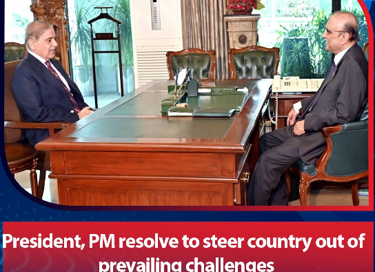 Prime Minister Shehbaz Sharif on Tuesday met with President Asif Ali Zardari wherein they expressed their resolve to steer the country out of prevailing challenges. In the meeting, they discussed the country’s overall political and economic situation,