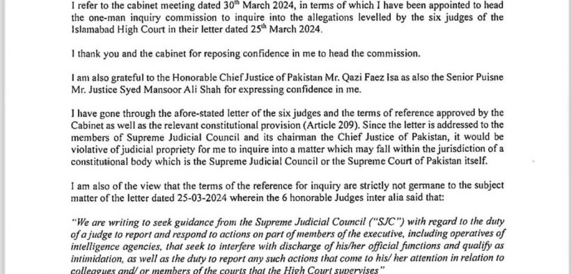 عدلیہ کی آزادی اور معزز چھ جج صاحبان کے خط پر سیاست نہیں ہونی چاہیے