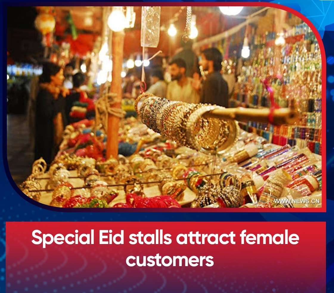 Special Eid stalls of cosmetics, Mehndi, bangles, artificial jewellery and other demanded items of Eid-ul-Fitr, are being witnessed everywhere particularly in busy markets and bazaars of the city.