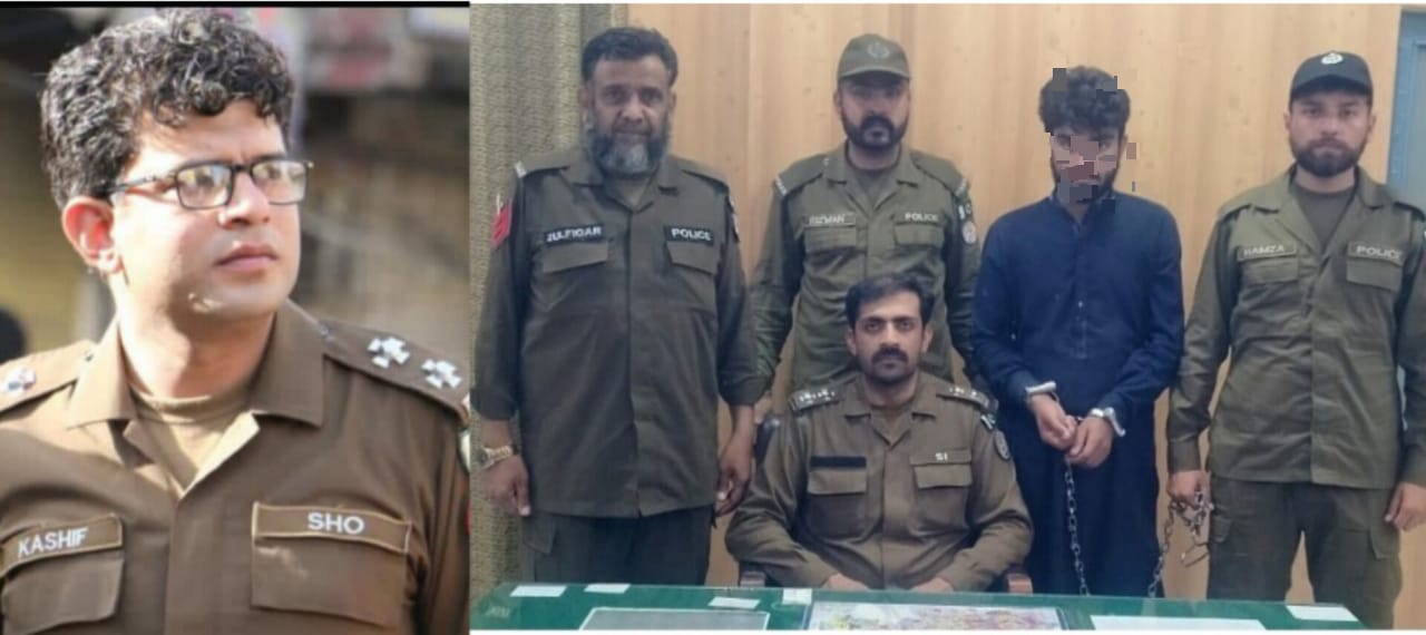 ایس ایچ او تھانہ گوجرخان ملک کاشف کی ہمراہ پولیس ٹیم اہم کاروائی، دس سالہ بچی کو اغواء کرکے زیادتی اور قتل کرنے والا سفاک درندہ صفت ملزم گرفتار، ملزم نے مقتولہ بچی کا پڑوسی تھا جس نے چند روز قبل 10 سالہ عائشہ نور کو اغواء کیا اور زیادتی کرنے کے بعد قتل کر کے نعش کو کنویں میں پھینک دیا تھا،ملزم نے دوران تفتیش 10سالہ بچی کو اغواء کر کے زیادتی اور قتل کرنے کا انکشاف کیا۔ تفصیلات کے مطابق گوجرخان پولیس نے کاروائی کرتے ہوئے دس سالہ بچی کو اغواء کرکے زیادتی اور قتل کرنے والے سفاک درندہ صفت ملزم فلک شیر کو گرفتار کرلیا، ملزم فلک شیرمقتولہ بچی کا پڑوسی تھا جس نے چند روز قبل 10 سالہ عائشہ نور کو اغواء کیا اور زیادتی کرنے کے بعد قتل کر کے نعش کو کنویں میں پھینک دیا تھا،واقعہ کا مقدمہ بچی کی والدہ کی مدعیت میں نامعلوم ملزمان کے خلاف تھانہ گوجرخان میں درج کیا گیا تھا،سی پی او سید خالدہمدانی نے واقعہ کا نوٹس لیتے ہوئے خصوصی ٹیمیں تشکیل دے کر ملزم کی جلدازجلد گرفتاری کا ٹاسک دیا تھا،ایس پی صدر محمد نبیل کھوکھر کی سربراہی میں گوجر خان پولیس نے تمام زاویوں پر تحقیقات کرتے ہوئے جدیدٹیکنالوجی اور ہیومن انٹیلی جینس کی مدد سے سفاک ملزم کو ٹریس کرکے گرفتار کرلیا،ملزم نے دوران تفتیش 10سالہ بچی کو اغواء کر کے زیادتی اور قتل کرنے کا انکشاف کیا،ملزم کو ٹھوس شواہد کے ساتھ چالان عدالت کرکے قرار واقعی سزا دلوائی جائے گی، اہم ترین کیس پر ملزم کی قلیل وقت میں گرفتاری پر ایس ایس پی آپریشنز فلائٹ لیفٹیننٹ (ر) حافظ کامران اصغرنے ایس پی صدر محمد نبیل کھوکھر، ایس ڈی پی او گوجر خان اور گوجر خان پولیس کو شاباش دیتے ہوئے کہا کہ بچوں اور خواتین پر تشدد، زیادتی اور ان کا استحصال ناقابل برداشت ہے۔