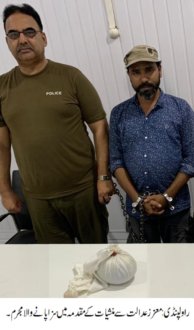 راولپنڈی(سہ پہر) راولپنڈی پولیس کی موثر پولیسنگ، معزز عدالت نے منشیات کے مقدمہ میں مجرم کو سزا سنادی