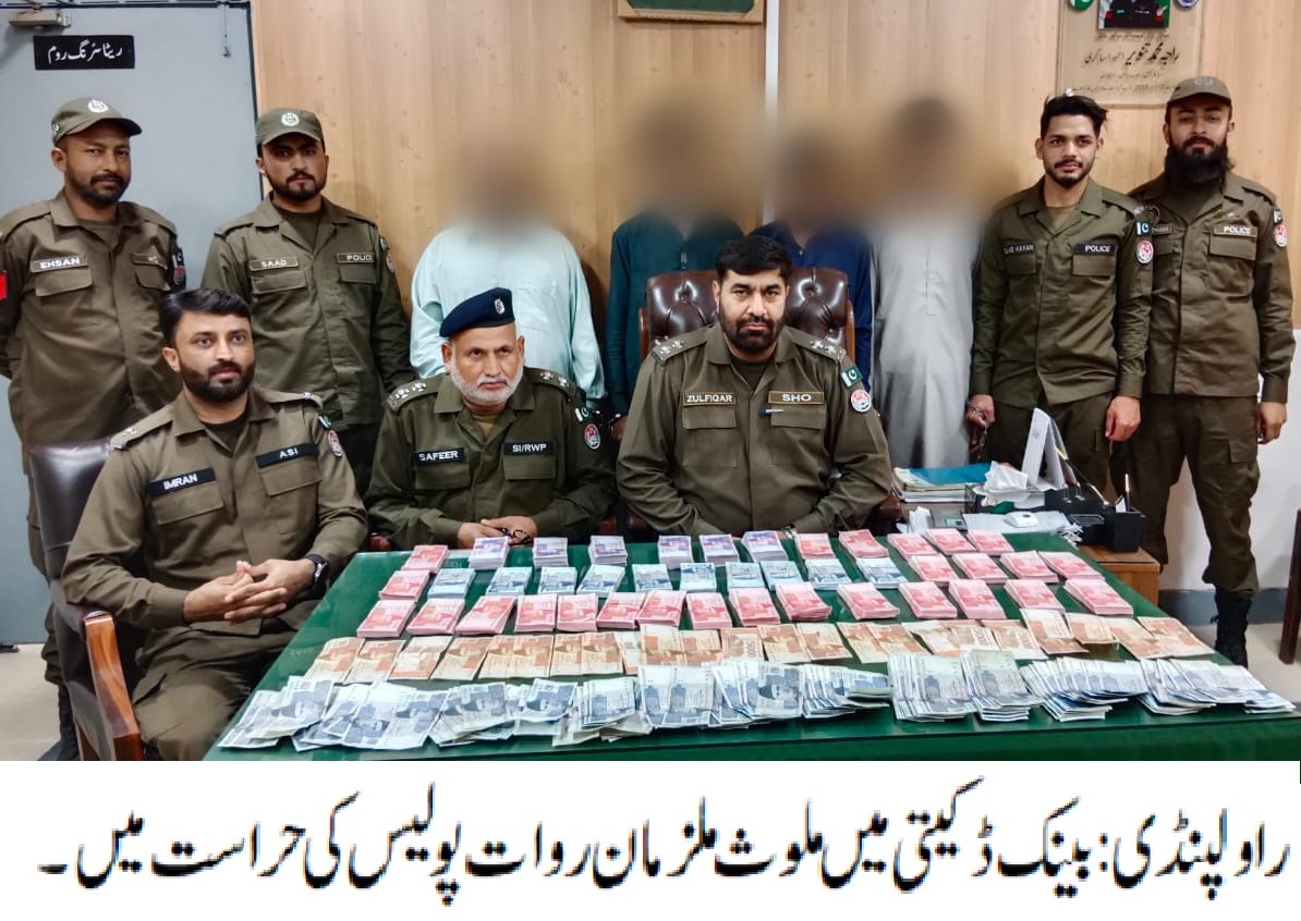راولپنڈی(سہ پہر) ایس ایچ او روات چوہدری ذوالفقار کی زیرنگرانی پولیس ٹیم کی اہم کاروائی، بینک ڈکیتی میں ملوث گینگ کے 4 ملزمان گرفتار