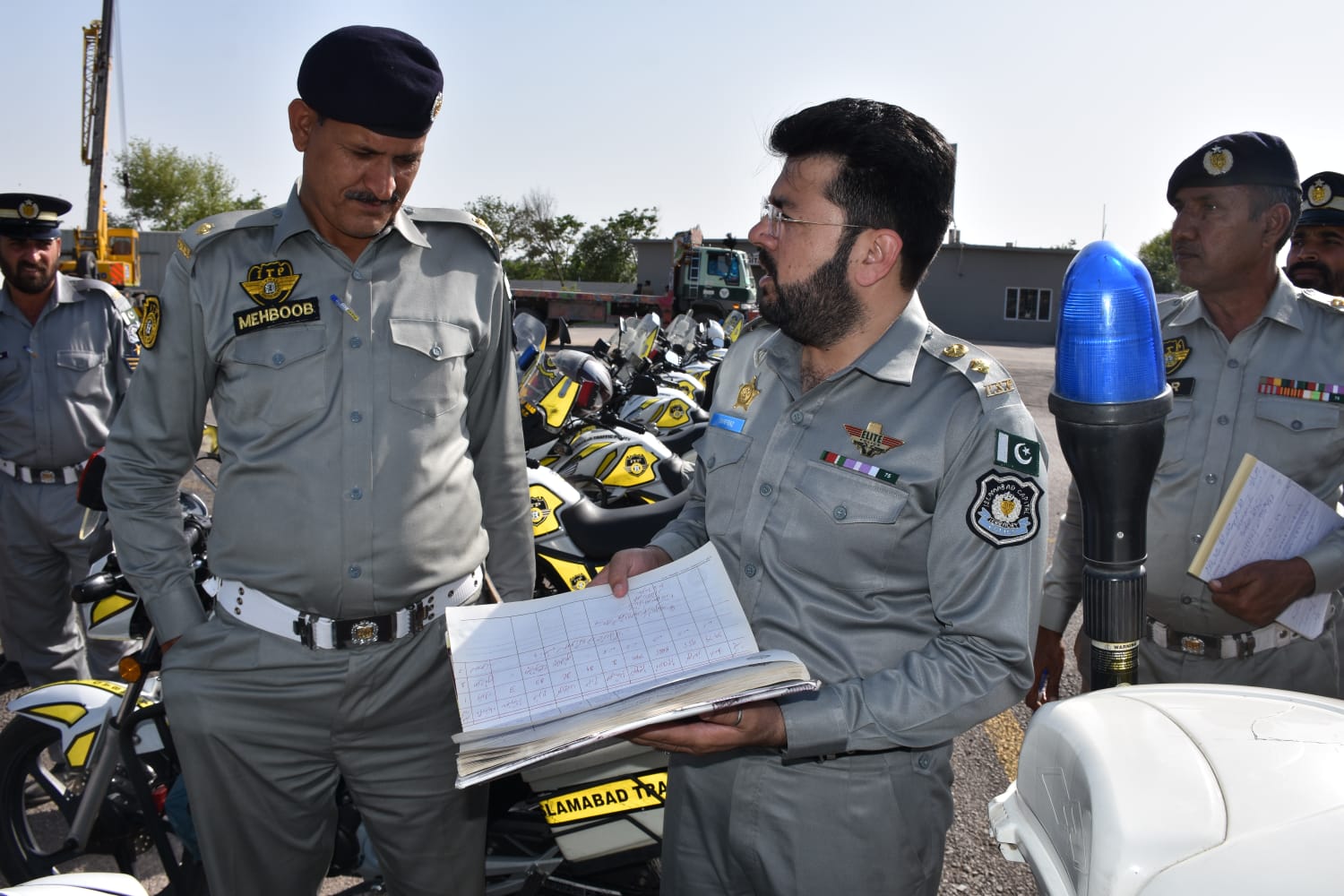 ایس ایس پی ٹریفک اسلام آباد محمد سرفراز ورک نے ٹریفک پولیس کے زیر استعمال موٹر سائیکلوں کامعائنہ کیا،