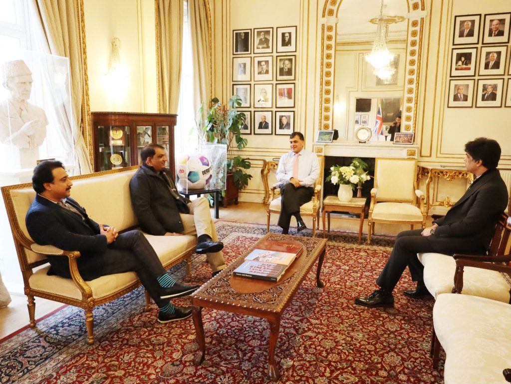 برطانیہ میں پاکستان کے ہائی کمشنر ڈاکٹر محمد فیصل سے سینئر صحافی رانا عمران لطیف اور پاکستان اوورسیز کلب یو کے کے چیئرمین فیصل خواجہ نے پیر کے روز ملاقات کی، جس میں باہمی دلچسپی کے اہم امور پر تبادلہ خیال کیا گیا۔ ملاقات میں پاکستان ہائی کمیشن کے پریس منسٹر علی نواز ملک بھی شریک تھے۔ اس دوران میڈیا کے بدلتے ہوئے رجحانات اور ان کے عالمی اثرات پر تفصیلی گفتگو ہوئی۔