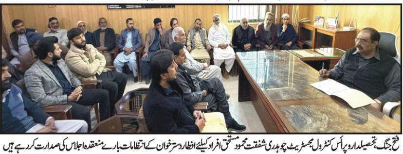 فتح جنگ (سہ پہر) تحصیلدار فتح جنگ چوہدری شفقت محمود کی زیر صدارت رمضان المبارک کے دوران مستحق افراد کے لیے افطار دسترخوان کے انتظامات کے حوالے سے ایک اہم اجلاس منعقد ہوا۔