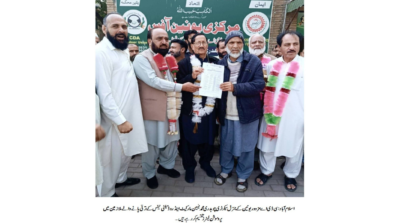اسلام آباد (سہ پہر) سی ڈی اے کے شعبہ مارکیٹ اینڈ روڈ مینٹی نینس کے درجنوں ملازمین کی ترقی کے آرڈرز جاری کر دیے گئے۔ اس سلسلے میں پروموشن لیٹرز کی تقسیم کی پروقار تقریب مرکزی یونین آفس میں منعقد ہوئی جس میں قائدِ مزدور چوہدری محمد یٰسین نے ترقی پانے والے ملازمین میں پروموشن لیٹرز تقسیم کیے۔تقریب میں مزدور رہنما صوفی محمود علی، اسد محمود، محمد سرفراز ملک، وارث دلیپ، واجد گجر، صفدر نقوی، طارق آفریدی، سی بی اے کمیٹی مارکیٹ اینڈ روڈ مینٹیننس کے چیئرمین چوہدری محمد انور، سپریم ہیڈ تاج کیانی، صدر وقار خان، جنرل سیکرٹری ایاز عباسی، سینئر وائس چیئرمین ملک عدنان، ملک احسان، عمران اللہ، شاہد گجر، زاہد خان، تنویر احمد، ملک اکمل شہزاد، گوہر الٰہی، ملک اسلم سمیت دیگر عہدیداران اور ملازمین کی کثیر تعداد موجود تھی۔اس موقع پر ترقی پانے والے ملازمین نے مزدور یونین کے قائدین کا شکریہ ادا کرتے ہوئے کہا کہ بلاشبہ سی ڈی اے مزدور یونین ہی ملازمین کی نمائندہ تنظیم ہے جو بلاتفریق ان کی خدمت کر رہی ہے۔ انہوں نے امید ظاہر کی کہ یونین پہلے سے بڑھ کر تمام ملازمین کے مسائل ترجیحی بنیادوں پر حل کروائے گی۔تقریب سے خطاب کرتے ہوئے سی ڈی اے مزدور یونین کے جنرل سیکرٹری چوہدری محمد یٰسین نے کہا کہ ریفرنڈم میں کیے گئے وعدوں کی تکمیل جاری ہے اور الحمدللہ اب تک سات ہزار سے زائد فیلڈ اسٹاف کی پروموشنز کرائی جا چکی ہیں جس کی مثال ماضی میں نہیں ملتی۔انہوں نے کہا کہ مزدور یونین نے ادارے کے مالی، بیلدار، والومین اور دیگر فیلڈ اسٹاف جو ایک ہی اسکیل میں ریٹائر ہو جاتے تھے انکی ترقی کے لیے لائن آف پروموشن کا باقاعدہ معیار بنوایا اور تعلیم کی شرط ختم کروائی جس سے سینکڑوں ملازمین مستفید ہو رہے ہیں اور اگلے اسکیل میں ترقی حاصل کر رہے ہیں۔چوہدری محمد یٰسین نے مزید کہا کہ مشکل حالات کے باوجود ملازمین کو 20 فیصد مہنگائی الاؤنس دلوایا گیا اور دیگر الاؤنسز میں 50 سے 100 فیصد تک اضافہ کروایا گیااور ان شاء اللہ باقی ماندہ مسائل بھی ترجیحی بنیادوں پر حل کیے جائیں گے۔آخر میں انہوں نے چیئرمین سی ڈی اے اور بورڈ ممبران سے اپیل کی کہ وہ ملازمین کی منتخب کردہ سی بی اے یونین کے ساتھ مل کر مذاکرات کریں تاکہ مسائل کو جلد حل کیا جا سکے اور ملازمین میں پائی جانے والی بے چینی کا خاتمہ ممکن ہو۔