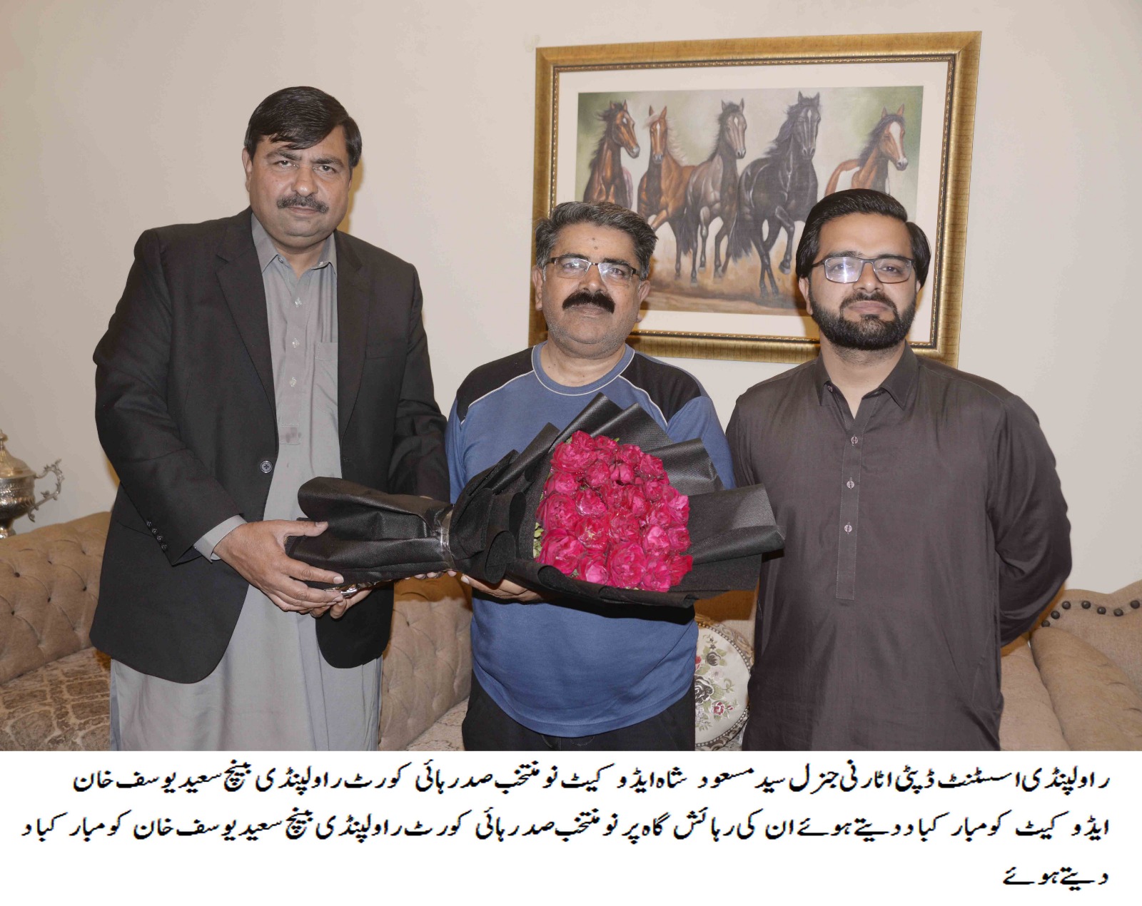 راولپنڈی (سہ پہر) اسسٹنٹ ڈپٹی اٹارنی جنرل سید مسعود شاہ ایڈوکیٹ نو منتخب صدر ہائی کورٹ راولپنڈی بینچ سعید یوسف خان ایڈوکیٹ کو مبارکباد دیتے ہوئے ان کی رہائش گاہ پر نو منتخب صدر ہائی کورٹ راولپنڈی بینچ سعید یوسف خان کو مبارکباد دیتے ہوئے