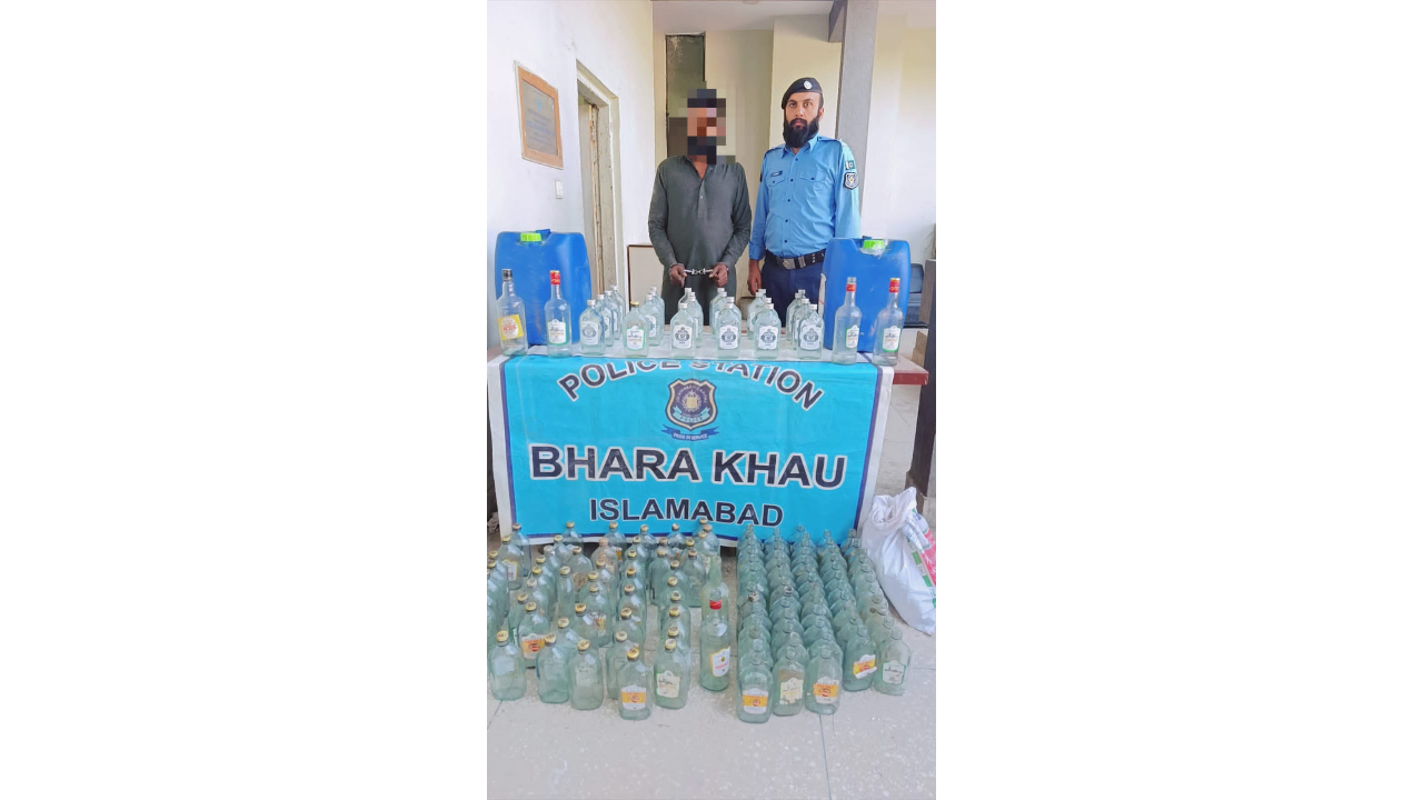 اسلام آباد (سہ پہر) تھانہ بھارہ کہو کے ایس ایچ او تنویر حسین میکسی کی بڑی کاروائی گھر میں شراب کی بڑی کھیپ پکڑ لی 120 لیٹر شراب برامد مقدمہ درج