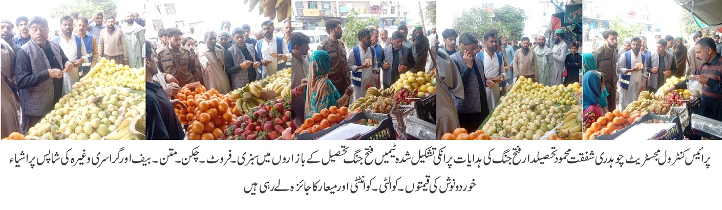 اسلام آباد (سہ پہر) فتح جنگ وزیراعلیٰ پنجاب مریم نواز کے عوامی خدمت کے وژن کے تحت ضلعی انتظامیہ کی جانب سے ماہِ صیام میں عوام کو ریلیف فراہم کرنے کے لیے مؤثر اقدامات جاری ہیں۔ کمشنر راولپنڈی، ڈپٹی کمشنر اٹک اور اسسٹنٹ کمشنر فتح جنگ کی خصوصی ہدایات کی روشنی میں تحصیلدار و پرائس کنٹرول مجسٹریٹ اور عوام دوست افسر چوہدری شفقت محمود نے شہریوں کو معیاری اشیائے خورونوش مناسب قیمتوں پر فراہم کرنے اور گرانفروشی کی روک تھام کے لیے خصوصی ٹیم تشکیل دی تھی جو روزانہ کی بنیاد پر شہر کے مختلف بازاروں، مارکیٹوں اور دکانوں کی چیکنگ کر رہی ہے۔