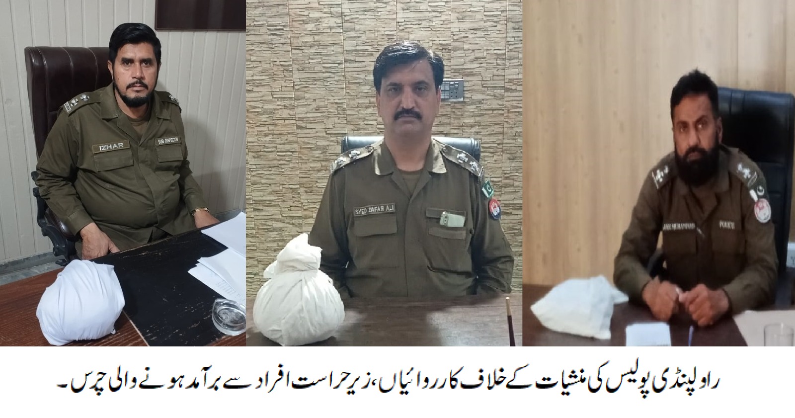 راولپنڈی (سہ پہر) سی پی او سید خالد محمود ہمدانی کی ہدایت پر راولپنڈی پولیس کی منشیات کے خلاف کارروائ