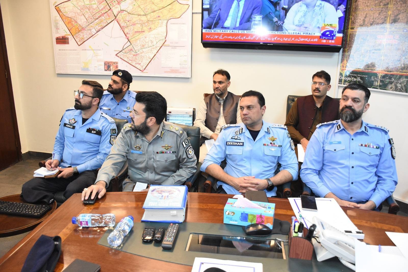 Islamabad (Sapeher Times) IGP Islamabad reviews overall law and order situation and police affairs,According to details, high-level meetings were held at the Central Police Office under the chairmanship of the IGP Islamabad Syed Ali Nasir Rizvi. The meetings were attended by DG Safe City Muhammad Haroon Joya, DIG Headquarters Malik Jameel Zafar, along with AIGs, SSPs, and SPs.During the meeting, the IGP Islamabad reviewed the overall law and order situation in the federal capital, the effectiveness of patrolling across the city, checking mechanisms at police checkpoints, security arrangements for the Red zone, and safety measures for foreign delegations.On this occasion, he issued clear directives to all officers, emphasizing that facilitating the general public must remain the top priority. He also termed the welfare of police personnel as essential, stating that better public service is only possible when officers are well-supported and cared for.The IGP Islamabad also reviewed reforms in the investigation system, improvements in training at the Capital Police College, and ongoing police welfare projects.Later, he assessed progress on Safe City Islamabad expansion projects, technology-driven initiatives, and mobile applications aimed at facilitating citizens. He directed that public service delivery be aligned with modern standards.Furthermore, the IGP Islamabad discussed key measures regarding timely resolution of public complaints, effective prosecution of cases, and improvements in legal processes. He instructed officers to make the complaints management system more efficient and ensure prompt, merit-based resolution of citizens grievances to further strengthen public trust in the police.