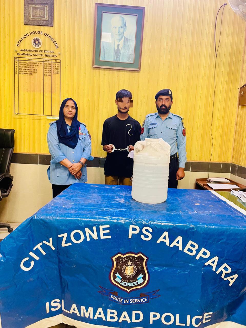 اسلام آباد (سہ پہر) پولیس کا جر ائم کے انسداد اور جرائم پیشہ عناصر کی گرفتاری کیلئے موثر کریک ڈاون جاری۔سنگین جرائم میں ملوث آٹھ مجرم اشتہاریوں سمیت 12جرائم پیشہ عناصر گرفتار۔ ملزمان کے قبضہ سے منشیا ت اور اسلحہ معہ ایمونیشن برآمد۔گرفتار ملزمان کے خلاف مقدمات درج۔مزید تفتیش جاری ہے۔تفصیلات کے مطابق انسپکٹر جنرل آف پولیس اسلام آباد سید علی ناصر رضوی کے خصوصی احکامات پر اسلام آباد پولیس کا وفاقی دارلحکومت میں شہریوں کی جان ومال کے تحفظ کو یقینی بنانے کیلئے جرائم کے انسداد اور جرائم پیشہ عناصر کی گرفتار ی کے لئے موثر کریک ڈاو¿ن جاری ہے۔اس سلسلے میں تھانہ آبپارہ، تھانہ سنگجانی،تھانہ کھنہ اور تھانہ بنی گالہ پولیس ٹیموں نے چار ملزمان کو گرفتار کرکے ان کے قبضہ سے30 بوتل شراب اورمختلف بور کے تین عدد پستول معہ ایمونیشن برآمد کرلئے۔گرفتار ملزمان کے خلاف مقدمات درج کرکے مزید تفتیش جاری ہے جبکہ مجرمان اشتہا ری اور عدالتی مفرروان کی گرفتاری کیلئے چلائی جانے والی خصوصی مہم کے دوران آٹھ مجرمان کی گرفتاری عمل میں لا ئی گئی۔ایس ایس پی آپریشنز اسلام آباد قاضی علی رضا نے کہا کہ اسلام آباد پولیس وفاقی دارلحکومت میں شہریوں کی جان ومال کے تحفظ کو یقینی بنانے کیلئے ہمہ وقت مصروف عمل ہے۔کسی بھی عناصر کو شہریوں کے امن میں خلل ڈالنے کی اجازت نہیں دی جائے گی۔شہریوں کی جان ومال کی حفاظت اسلام آباد پولیس کی اولین ترجیح ہے۔ شہریوں سے بھی گزارش ہے کہ کسی بھی مشکوک سرگرمی کے متعلق متعلقہ تھانہ یاایمرجنسی ہیلپ لائن “پکار”15-پرفوری اطلاع دیں تاکہ پولیس اور عوام کے باہمی تعاون سے شہر کو جرائم سے پاک کیاجاسکے