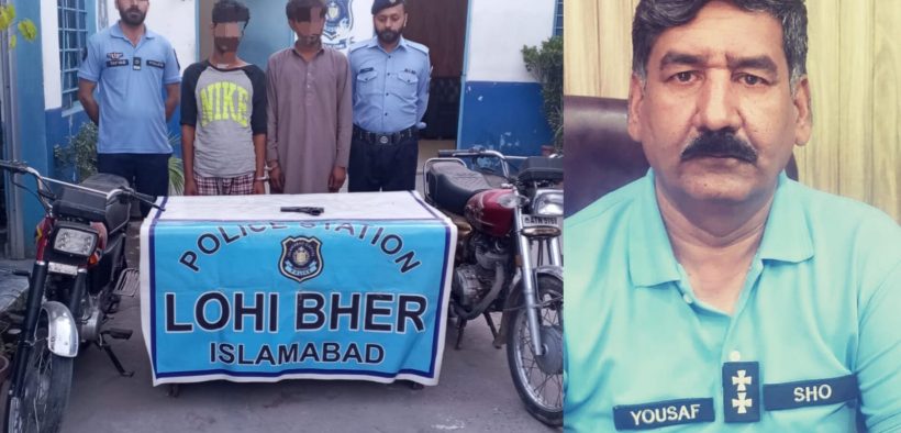اسلام آباد (سہ پہر) ایس ایچ او تھانہ لوھی بھیر یوسف جٹ کی ہمراہ سجاد احمد ایس آئی ۔انجم نثار ایچ۔سی رحمت ایچ۔سی کے کاروائی ۔ موٹرسائیکل چوری کی وارداتوں میں ملوث 2 افراد گرفتار 02 موٹرسائیکل بمہ پسٹل برآمد مزید تفتیش جاری ۔تفصیلات کے مطابق ایس ایچ او تھانہ لوھی بھیر کی سربراهی میں پولیس نے علاقے میں جرائم پیشہ عناصر کیخلاف کریک ڈاؤن جاری رکھتے ہوئے سجاد احمد سب انسپکٹر نے ہمراہ انجم نثار ایچ۔سی . رحمت ایچ۔سی کے موٹرسائیکل چوری کی وارداتوں میں ملوث 2 رکنی گینگ کو مقدمہ نمبر896/ 26 جرم 381 ۔ 244/26 بجرم 381 کےتحت گرفتار کر کے دوران تفتیش 02 موٹرسائیکل 125 سمیت وارداتوں میں استعمال ہونے والا اسلحہ پسٹل 30 بور بمہ روند برآمد کر لیا جبکہ پولیس کے مطابق گرفتار افراد سے مزید تفتیش جاری ھے ۔ ایس پی سواں زون خرم اشرف نے پولیس ٹیم کو شاباش دیتے ہوئے کہا کہ گرفتار افراد کو ٹھوس شواہد پر چالان عدالت پیش کیا جائے گا ۔