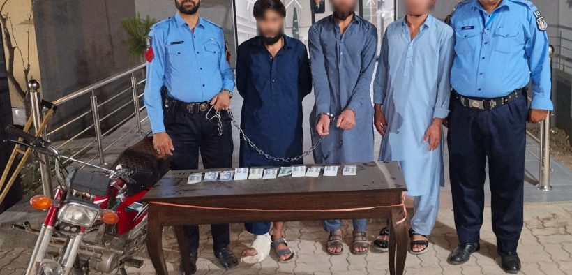 اسلام آباد (سہ پہر) ڈکیتی اور راہزنی میں ملوث خطرناک گروہ کے تین ارکان گرفتار۔گرفتار ملزمان کے قبضہ سے گن پوائنٹ پر چھینی ہوئی نقدی اور موٹرسائیکل برآمد،ملزمان کے خلاف مقدمات درج ہیں