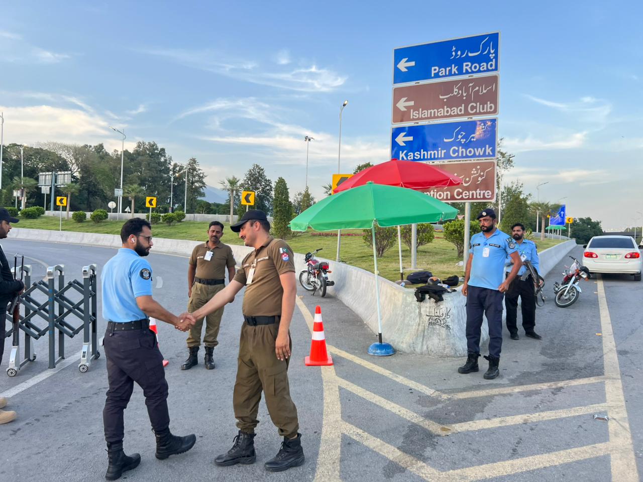 اسلام آباد (سہ پہر) ایس ایس پی انوسٹی گیشنز اسلام آباد محمد عثمان طارق بٹ اور ایس ایس پی آپریشنز اسلام آ باد قاضی علی رضا کا نا کہ جا ت اور مختلف ڈیو ٹی پوائنٹس کا دورہ۔ڈیو ٹی پر موجود پولیس افسران و جوانوں سے ملاقات کی