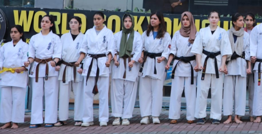 “I am very happy to see the girls and children at Raja Martial Arts Club World So-Kyokushin Federation Headquarters Bahria Town, Rawalpindi,” said Tahira Bano Mubarak, the newly elected Executive Member of the High Court Bar Association. She explained the benefits of martial arts for girls and added that martial arts classes help girls build self-confidence, be less violent towards others and learn to protect themselves.
