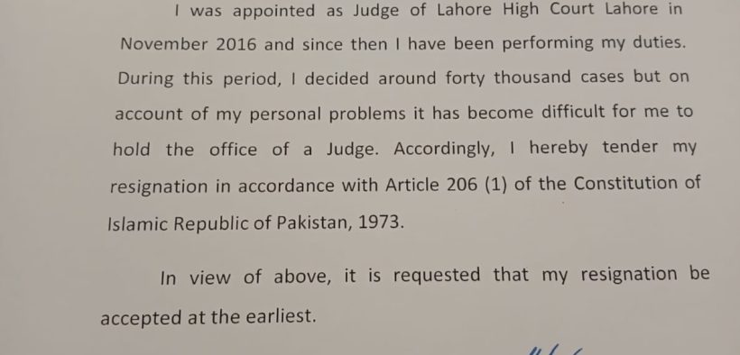واضح رہے کہ گزشتہ سال لاہور ہائی کورٹ کے جسٹس شاہد جمیل خان نے اپنے عہدے سے استعفیٰ دیا تھا۔ جسٹس شاہد جمیل خان نے 2029 میں ریٹائر ہونا تھا، جسٹس شاہد جمیل خان سنیارٹی لسٹ میں گیارہویں نمبر پر تھے، جسٹس شاہد جمیل کی جانب سے ارسال کردہ استعفے میں کہا گیا تھا کہ میں نے 10 سال تک لاہور ہائی کورٹ کے جج کے طور پر فرائض انجام دیے، اب میں نے 1973 کے آئین پاکستان کے آرٹیکل 206 (1) کے تحت فوری طور پر مستعفی ہونے کا فیصلہ کیا ہے۔ جسٹس شاہد جمال نے اپنے استعفے میں لکھا تھا کہ لاہور ہائی کورٹ کا جج ہونا بہت اعزاز کی بات تھی لیکن ذاتی وجوہات کے باعث نئے باب کا آغاز کرنے کا فیصلہ کیا ہے۔ اس سے قبل جنوری 2024 میں سپریم کورٹ کے سینئر جج جسٹس اعجاز الاحسن اور جسٹس مظاہر اکبر نقوی نے اپنے عہدوں سے استعفیٰ دیا تھا