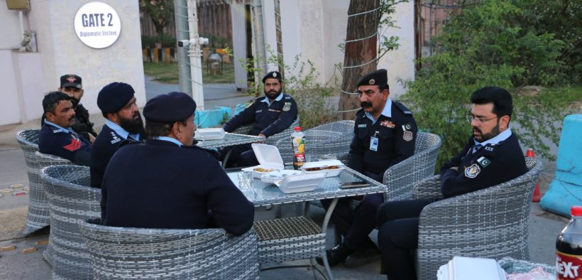 تفصیلا ت کے مطا بق ایس ایس پی سکیورٹی محمد سرفراز ورک نے ہائی سکیورٹی زون میں سکیورٹی کے فرائض منصبی پر تعینات افسران کے ہمر اہ روزہ افطا ر کیا، اس مو قع پردیگر سینئرپولیس افسران بھی مو جو د تھے، ایس ایس پی سکیورٹی نے کہا کہ سحر ی اور افطا ری کے اوقات میں اسلام آباد پولیس انتہا ئی متحرک ہے، شہر یو ں کی حفا ظت کے لئے یہ تما م اقداما ت اٹھا ئے جا رہے ہیں، انہو ں نے مزید کہا کہ ہائی سکیورٹی زون میں واقع اہم عمارتوں ،اداروں کی حفاظت،ملکی و غیر ملکی اہم شخصیات کی فول پروف سکیورٹی کو یقینی بنایا جارہا ہے،اسی کے ساتھ موجودہ حالات کے پیش نظر سکیورٹی ڈیوٹی کو ہائی الرٹ کر دیاگیا ہے،جبکہ اس امر کو یقینی بنایا گیا ہے کہ ڈیوٹی پر موجود تمام عملہ جدید اسلحہ اور ضروری سازو سامان سے لیس ہو،ریڈ زون میں داخل ہونے والی متعلقہ گاڑیوں کو مکمل چیکنگ کے بعد داخلے کی اجازت ہے جبکہ ڈپلومیٹک انکلیو میں متعلقہ اشخاص کوانٹری کارڈز کے ذریعے مکمل کوائف کی جانچ پڑتال کے بعد داخل ہونے دیا جارہا ہے،ایس ایس پی سکیورٹی محمد سرفراز ورک نے کہا کہ ہائی سکیورٹی زون میں واقع تمام سرکاری و نجی اداروں ، سفارت خانوں اور اقوام متحدہ کے دفاتر کی سکیورٹی ہماری اولین ترجیحات میں شامل ہے،انہوں نے مزید کہا کہ اس افطار ڈنر کا مقصد پولیس افسران کے مورال کو بلند کرنا ہے اور اس بات کا احساس دلانا ہے کہ ہم سب ایک ہیں ۔