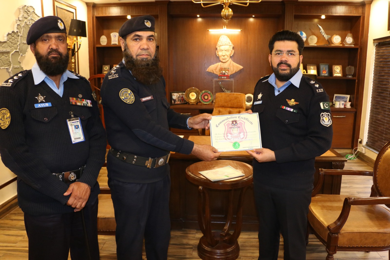 تفصیلات کے مطابق انسپکٹر جنرل آف پولیس اسلام آباد سید علی ناصر رضوی کے خصوصی احکامات کی روشنی میں سینئر سپرٹینڈنٹ آف پولیس سکیورٹی ڈویژن محمد سرفراز ورک نے پولیس افسران کو اچھی کارکردگی کا مظاہرہ کرنے پر تعریفی اسناد سے نوازا اور ان میں انعامات تقسیم کئے،اس موقع پر ایس ایس پی سکیورٹی ڈویژن نے کہا کہ آئی جی اسلام آباد کے احکامات پر اسلام آباد پولیس میں افسران کی حوصلہ افزائی کا سلسلہ جاری ہے،تمام افسران محنت،جانفشانی اور دل جوئی سے کام کریں ،پولیس افسران کی اچھی کارکردگی کو سراہا جائے گا جبکہ ناقص اور غیر تسلی بخش کارکردگی کا مظاہرہ کرنیوالے افسران کے خلاف محکمانہ کارروائیاں عمل میں لائی جائے گی،انہوں نے مزید کہا کہ کسی پولیس آفیسر کو کسی بھی قسم کا مسئلہ یا پریشانی درپیش ہوتو میرے دفتر کے دروازے آپ کے لئے ہمیشہ کھلے ہیں،تمام افسران بہترین فرائض منصبی ادا کرنے کیلئے اپنی تمام تر صلاحیتیں بروئے کار لائیں،شہریوں کی جان ومال کا تحفظ اور امن و امان کو برقرار رکھنا ہماری ترجیح اور ذمہ داری ہے