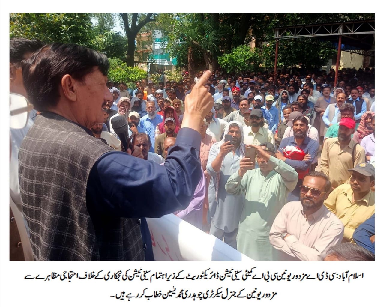 سی ڈی اے مزدور یونین سی بی اے کمیٹی سینی ٹیشن ڈائریکٹوریٹ کے زیر اہتمام سینی ٹیشن کی نجکار ی کے خلاف بھرپوراحتجاجی مظاہرہ کیا گیا جس میں سی ڈی اے مزدور یونین کے مرکزی عہدیداران سمیت ہزاروں ملازمین نے شرکت کی،مظاہرے سے خطاب کرتے ہوئے پاکستان ورکرزفیڈریشن کے سیکرٹری جنرل اور قائد مزدور یونین چوہدری محمد یٰسین،صدراورنگزیب خان،وارث دلیپ،ملک دلشاد،چوہدری منیر،تشکیل جاوید بھٹی،نذیربھٹی،فاروق نور،الیاس طفیل و دیگرعہدیداران نے کہا کہ سی ڈی اے کے ملازمین کی انتھک محنت اور جدوجہد کی وجہ سے اسلام آباد جیسا خوبصورت شہر بین الاقوامی سطح پر اپنی پہچان رکھتا ہے لیکن موجودہ جمہوری حکومت کے دور میں سی ڈی اے جیسے قومی ادارے کے ملازمین سمیت اس شہر کی صفائی وستھرائی کا کام کرنے والے ملازمین کے خلاف سالڈ ویسٹ مینجمنٹ کمپنی کی صورت میں ایسے اقدامات اٹھائے جو اس شہر کے کسی بھی سٹیک ہولڈر کو قبول نہیں اور اس نجکاری کے خلاف ہم سی ڈی اے مزدور یونین کی قیادت اور کارکنوں کے شانہ بشانہ کھڑے ہیں،انھوں نے کہا کہ ماضی میں بھی اسلام آباد جیسے خوبصورت شہر کو بلدیاتی اداروں کے حوالے کیا گیا جس کی وجہ سے اسلام آباد جیسا خوبصورت شہر بدصورتی کا نمونہ پیش کرنے لگا،ہم خراج تحسین پیش کرتے ہیں چیئرمین سی ڈی اے چوہدری محمد علی رندھاوا،ممبرایڈمن طلعت محمود،ممبرانجینئرنگ سید نفاست رضااور سی ڈی اے ملازمین کی انتھک محنت سے ایک بارپھر یہ شہر سرسبز و شاداب اورروشن آنے لگا ہے اورشہر میں نئے میگاپروجیکٹس شروع ہو چکے ہیں،چوہدری محمد یٰسین نے کہا کہ سی ڈی اے ایک قومی ادارہ ہے اوراس میں کام کرنے والے پندرہ ہزار محنت کش دراصل پندرہ ہزار خاندان ہیں جو اس شہر کے میزبان ہیں جنہوں نے اس شہر کو بین الاقوامی دنیا کا خوبصورت دارلحکومت بنانے میں اپنا اہم کرداراداکیا،میری سینی ٹیشن میں کام کرنے والی مسیحی برادری پہلے ہی انتظامیہ کی ظالمانہ رویے کا شکار ہے، اس موقع پر ہم وزیر اعظم پاکستان میاں شہبازشریف،چیئرمین سی ڈی اے سے گزارش کرتے ہیں کہ سینی ٹیشن ڈائریکٹوریٹ کی نجکاری کے حوالے سے جاری ٹینڈرواپس لیا جائے اور محنت کشوں کے حقوق کو تحفظ فراہم کیا جائے،اگرسینی ٹیشن ڈائریکٹوریٹ کی نجکاری کا ٹینڈرواپس نہ لیا گیا تو سی ڈی اے مزدور یونین بھرپوراحتجاج کرے گی اورشہر بھر میں ہڑتال کی کال دے گی اس ضمن میں تمام ترذمہ داری سی ڈی اے انتظامیہ پر ہوگی،انھوں نے کہا کہ مزدور یونین نے ہمیشہ مذاکرات پر یقین رکھتے ہوئے جمہوریت کی مضبوطی کے لیے اپنا اہم کرداراداکیا،میراجینامرنا مزدوروں کے لیے اور میں اپنے محنت کش کے حقوق اور ان کے مفادات کے تحفظ کی خاطر کسی بھی آخری حد تک جانے کو تیار ہوں،مظاہرے کے شرکاء نے اپنے قائد چوہدری محمد یٰسین کو یہ یقین دلایا کہ انکی آواز پر ہم اپنے خون کا آخری قطرہ تک بہانے کو تیار ہیں۔