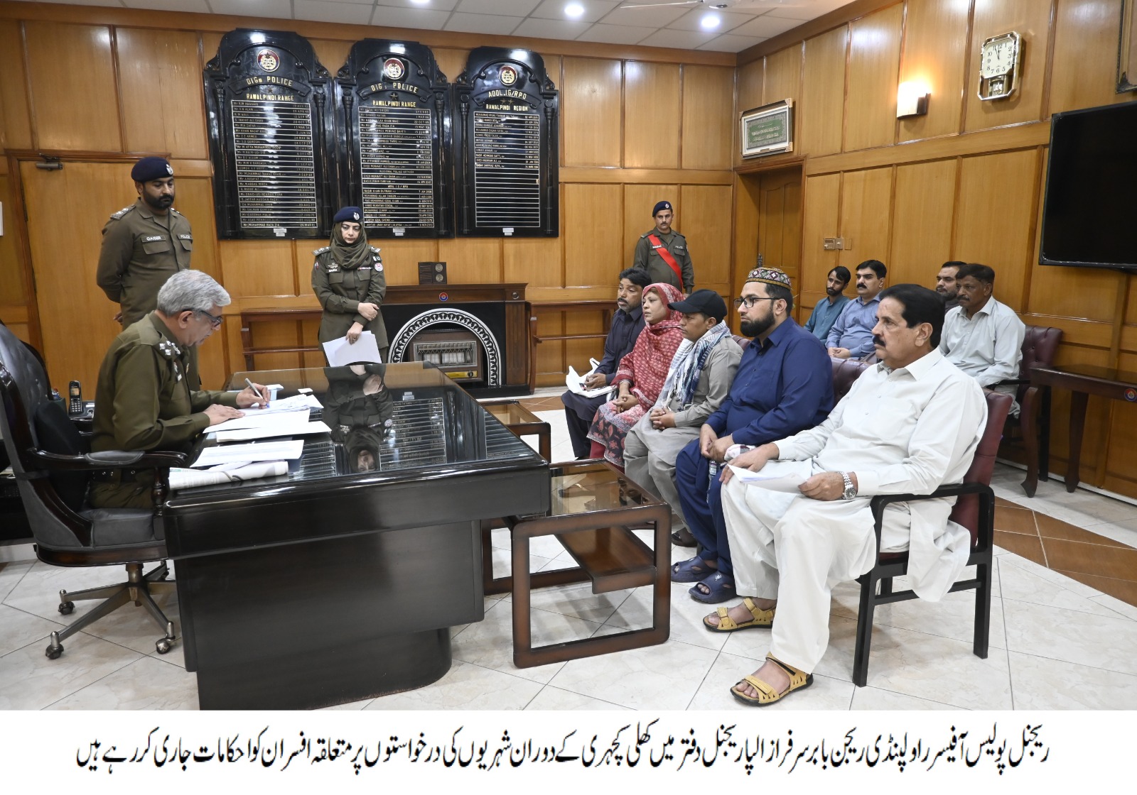 راولپنڈی (سہ پہر) ریجنل پولیس آفیسر راولپنڈی ریجن بابر سرفراز الپا نے ریجنل دفتر میں کھلی کچہری کا انعقاد کیا۔