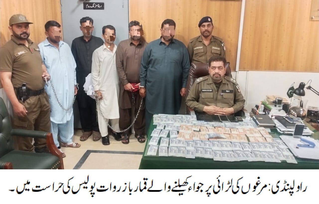 راولپنڈی (سہ پہر)(مظہر شاہ)ایس ایچ او تھانہ روات زاہد ظہور کی زیرنگرانی پولیس ٹیم کی کاروائی، مرغوں کی لڑائی پر جواء کھیلنے والے 5 قمار باز گرفتار