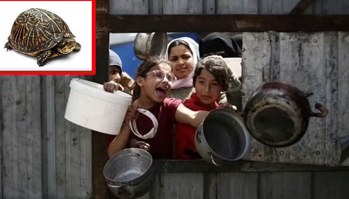 غیر ملکی میڈیا سے گفتگو کے دوران فلسطینی خاتون نے خیمے میں آگ پر پکتے سرخ گوشت کو دیکھتے افسردگی سے بتایا کہ ’بچے کچھوے کھانے سے خوفزدہ تھے لیکن ہم نے انہیں بتایا کہ اس کا ذائقہ مچھلی کی طرح لذیذ ہے، اس کے باوجود کچھ بچوں نے کھانا کھالیا لیکن کچھ نے کچھوے کھانے سے انکار کردیا‘۔