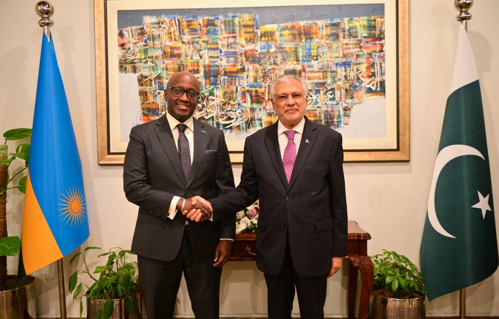 Foreign Minister Isaac Dar warmly welcomed the Rwandan Minister of Foreign Affairs and International Cooperation, Olivier Jean-Patrick Nduhungire, upon his arrival at the Foreign Office. On this occasion, various issues were discussed between the leadership of the two countries and the possibilities of increasing cooperation in various fields were reviewed.