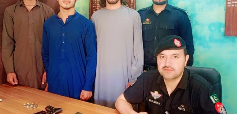ایس ایچ او تھانہ کھلابٹ صدیق شاہ ہمراہ نفری پولیس کے دوران گشت حدود تھانہ میں موجود تھے کہ ڈکیت گروہ کی لنک روڈ جاگل موجودگی کی اطلاع ملی ۔جو اطلاع کو مصدقہ جانتے ہوئے کاروائی عمل میں لائی ڈکیت گروہ کے 3 ملزمان رحمت اللہ ولد خان سکنہ کیمپ نمبر 20 ، حسن ولد حاجی عبداللہ اور عزیز اللہ ولد عمر خان ساکنان کیمپ نمبر 16کو گرفتار کرکے ملزمان سے 2 پستول معہ ایمونیشن اور 1 آہنی مکہ برآمد کرلیا۔دیگر ملزمان کے خلاف پولیس کاروائیاں جاری ۔ملزمان کے خلاف زیر دفعہ 399.400.401.15AA کے تحت مقدمہ درج رجسٹر کرلیا۔