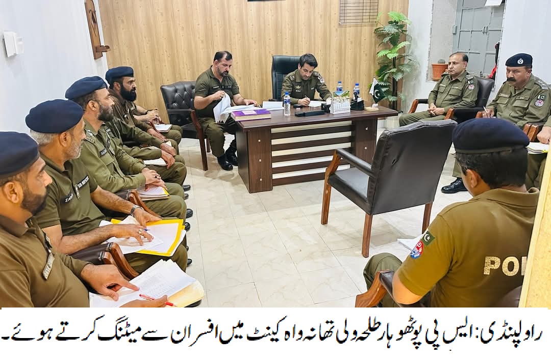 راولپنڈی (سہ پہر)(مظہر شاہ )ایس پی پوٹھوہار طلحہ ولی کی تھانہ واہ کینٹ میں میٹنگ