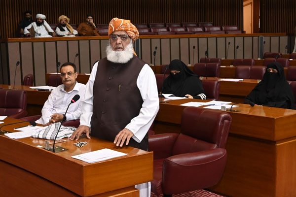 اسلام آباد (سہ پہر) مولانا فضل الرحمان کا حکومت کی غیر سنجیدگی پر اپنے ساتھیوں سمیت ایوان سے واک آوٹ