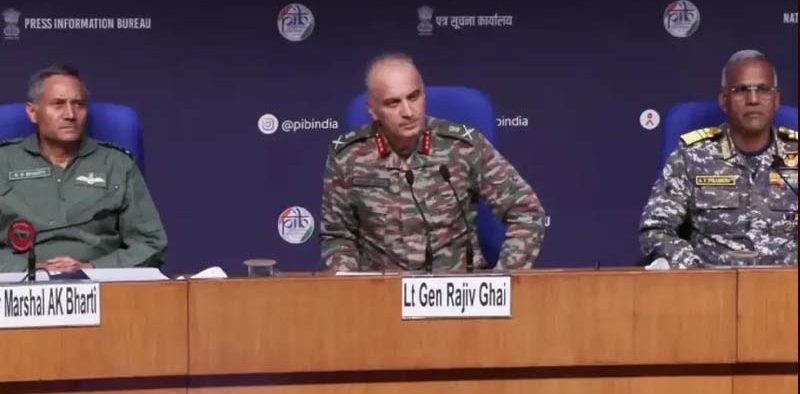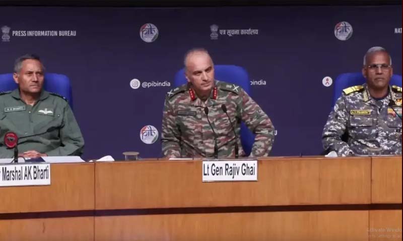 ایئر مارشل نے کہا کہ پاکستان کے لڑاکا طیارے گرائے ہیں لیکن انہوں نے یہ نہیں بتایا کہ ملبہ کہاں ہے۔نیوز کانفرنس کے دوران تینوں افواج کے افسران کے چہرے اترے ہوئے تھے، ڈی جی ایم او لیفٹیننٹ جنرل راجیو گھئی نے پاکستان کی جانب سے تباہ کن حملوں کا بھی اعتراف کیا اور بڑھک مارتے ہوئے کہا کہ سیزفائر کے بعد پاکستان آرمی نے وعدہ خلافی کی، اگر پاکستان نے در اندازی کی دوبارہ کوشش کی تو بھرپور جواب دیا جائے گا۔تینوں افسران جھوٹ پر جھوٹ بول کر عوامی عتاب سے بچنے کی کوشش کرتے رہے۔