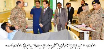 راولپنڈی (سہ پہر) پاکستانی قوم معرکہ حق کے ہیروز کے ساتھ کھڑی ہے، اسپیکر قومی اسمبلی سردار ایاز صادق کا دورہ سی ایم ایچ راولپنڈی