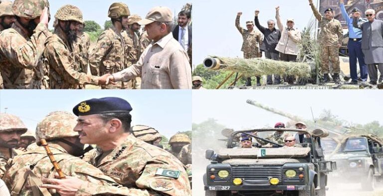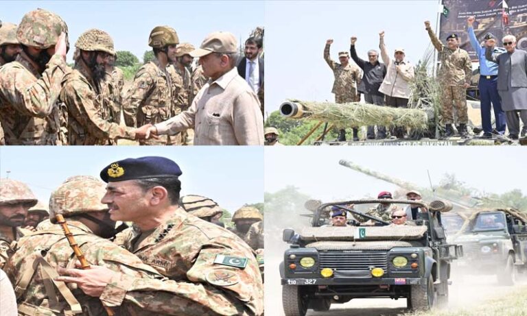 انہوں نے کہا کہ تاریخ یاد رکھے گی کس طرح چند گھنٹے میں دشمن کی جارحیت ناکام بنائی گئی جبکہ شہدا ہمیشہ قوم کیلئے سرخرو رہے ہیں اور ہمیشہ سرخرو رہیں گے۔وزیر اعظم کا کہنا تھا کہ افواج پاکستان نے دشمن کے غرور کو خاک میں ملاتے ہوئے ملک کا وقار اورعزت بڑھائی ہے اور میں چیئرمین جوائنٹ چیفس آف اسٹاف کمیٹی ، آرمی چیف ، ایئرچیف مارشل اور نیول چیف کو بھی مبارکباد پیش کرتا ہوں۔شہبازشریف نے کہا کہ آرمی چیف نے دانشمندی سے جنگ کی منصوبہ بندی کی، جنگ کیدوران میری آرمی چیف سے ملاقات ہوتی تھی، مجھے آرمی چیف پرفخر ہے، یہ قوم کے بیٹے ہیں، آرمی چیف، ایئرچیف اور نیول چیف قوم کی آنکھوں کے تارے بن چکے ہیں، افواج نے قوم کا سر فخر سے بلند کیا، دشمن کے ہوش ٹھکانے آگئے ہیں اور دوستوں کے حوصلے آسمان پر ہیں۔انہوں نے کہا کہ بھارت سے بدلہ لے لیا ہے، کوئی فوج پاک فوج کا بال بھی بیکا نہیں کرسکتی، ہمارا پانی بند کرنے کا نہیں سوچنا ، یہ ہماری ریڈ لائن ہے، مسٹر مودی 1971 میں مکتی باہنی کو کس نے ٹرین کیا تھا، جعفر ایکسپریس واقعے کے تانے بانے بی ایل اے ، ٹی ٹی پی اور بھارت سے ملتے ہیں، دہشتگردی کا ہمیشہ کیلئے خاتمہ کریں گے، کلبھوشن بلوچستان میں کیسے آیا۔